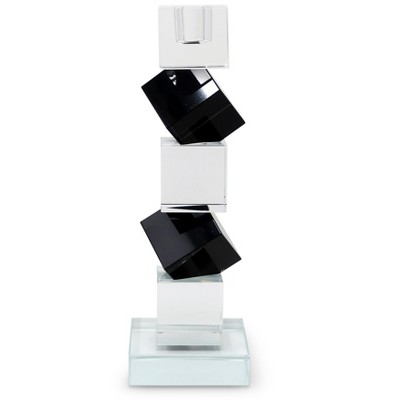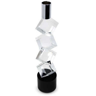 HomeRoots 14" Clear And Silver Geo Stacks Crystal Tabletop Taper Candlestick