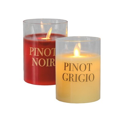 LumaBase Battery-Operated LED Glass Candles with Flickering Flame, Vineyard Names - Set of 2