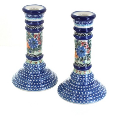 Blue Rose Polish Pottery 293 Vena Candlestick Pair