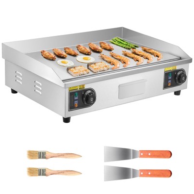 VEVOR Commercial Electric Griddle, 25.79 x 15.75 inch, 2800W, 122-570°F Adjustable Temp Control, Stainless Steel Body, Full Flat, Silver