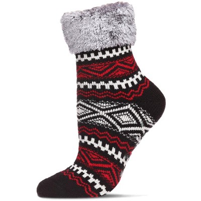 Memoi Women's Aztec Fair Isle Plush Cabin Socks Black 9-11