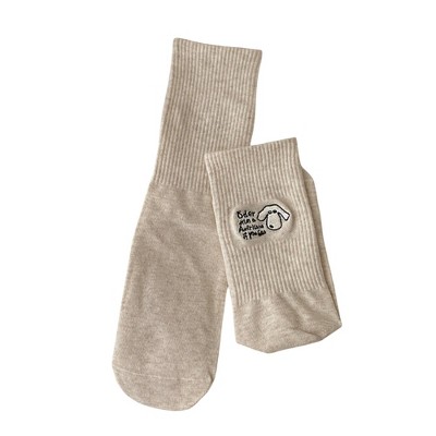 Anna-Kaci Women's 3-Pair Crew Sock Set Teddy Bear Textured Knit Soft Stretch Comfortable Everyday Socks - Beige