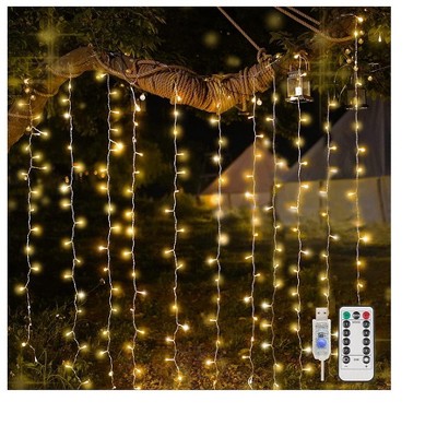 Itopfox 300 LED Remote Control Fairy Curtain Lights, Plug in Hanging String Lights for Window Wall, Bedroom, Wedding, Party, Christmas, Patio Decor