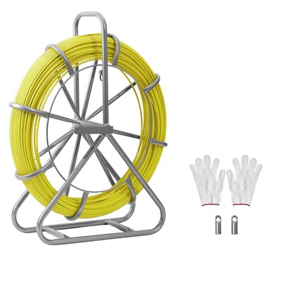 VEVOR Fish Tape Fiberglass, 500FT 6.3MM, Duct Rodder Fishtape Wire Puller with Stand, 1/4-In Cable Running Rod,Marked Every 5 Ft,Non-Conductive,Yellow