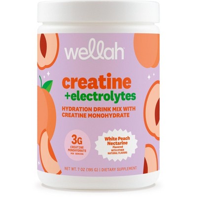 Wellah Creatine + Electrolytes Powder (White Peach Nectarine) 30 Servings - Hydration Drink Mix with 3g of Creatine Monohydrate