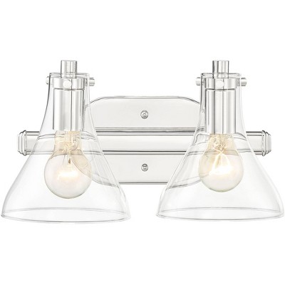 Possini Euro Design Sorren Modern Wall Light Sconce Polished Nickel Hardwire 14" 2-Light Fixture Clear Glass for Bedroom Bathroom Vanity Reading Home