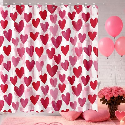 Watercolor Heart Valentines Shower Curtain, 70.8"Valentines Day Coquette Decor Pink Bathroom Curtain Set