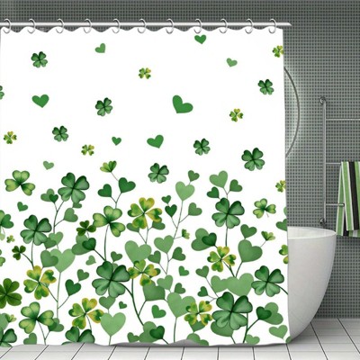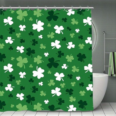 St. Patrick's Day Shower Curtain, Lucky Shamrock Decor Irish Green Bathroom Curtain Set Waterproof Polyester Fabric 70.8x70.8Inch