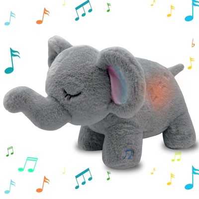 TITQWOP Elephant Breathing Stuffed Animal,Anxiety Relief Gray Sleeping Plush with Realistic Breathing Motion&Soothing Music Lights Portable Plushies