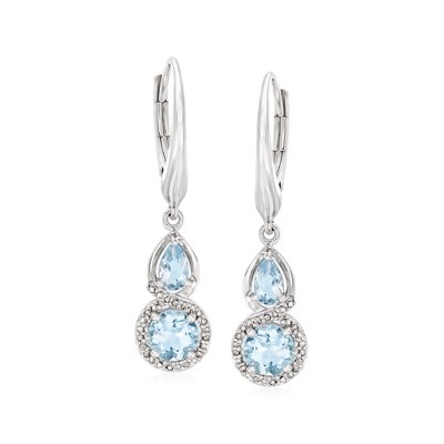 Ross-Simons 1.25 ct. t.w. Aquamarine and .13 ct. t.w. Diamond Drop Earrings in Sterling Silver
