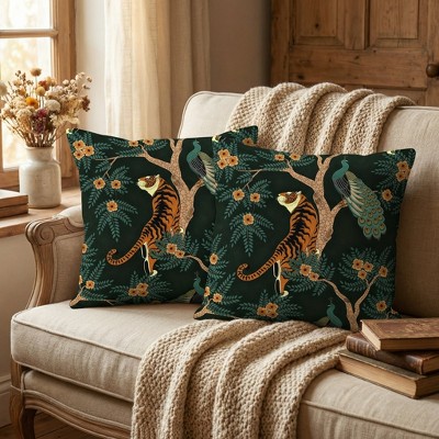 Lomsoe Tiger and Peacock Pillow Covers Sets of 2 Modern Decorative Square Throw Pillows for Home Outdoor