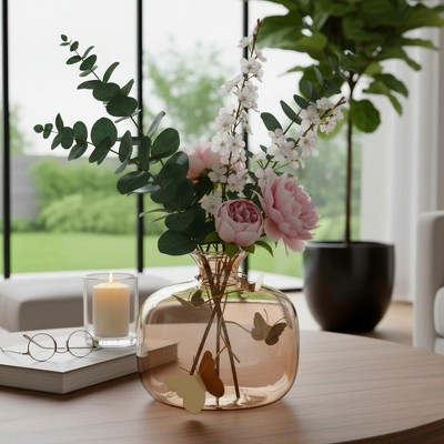 Glass Vase with Butterfly Garland for Living Room and Home Decor - Modern Flower Vase for Bedroom and Office Decor - 10", Gold & Metallic