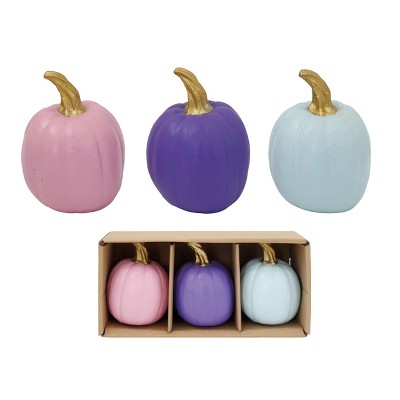 Transpac Set of 3 Multicolor Resin Pumpkin Sculptures in Kraft Box Decorative Tabletop Fall and Halloween Decor