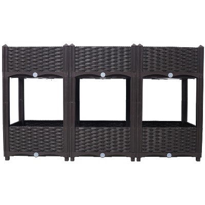 Gulches Raised Garden Bed, Elevated Planter Box with Rattan Wicker Look, Black, 27.5"x11.75"x27.5"