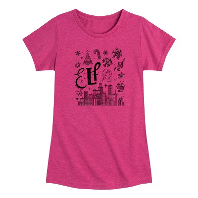 Girls' - Elf - Black Icon Doodles Short Sleeve Graphic T-Shirt