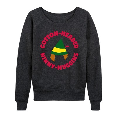 Women's - ELF - Christmas Family Set Ninny Muggins Lightweight French Terry Wide Neck Long Sleeve Graphic Shirt
