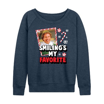 Women's - ELF - Christmas Smilings My Favorite Lightweight French Terry Wide Neck Long Sleeve Graphic Shirt