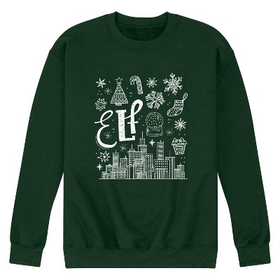 Men's - Elf - Elf Icon Doodles White Graphic Fleece Sweatshirt
