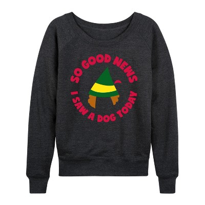 Women's - ELF - Saw a Dog Lightweight French Terry Wide Neck Long Sleeve Graphic Shirt