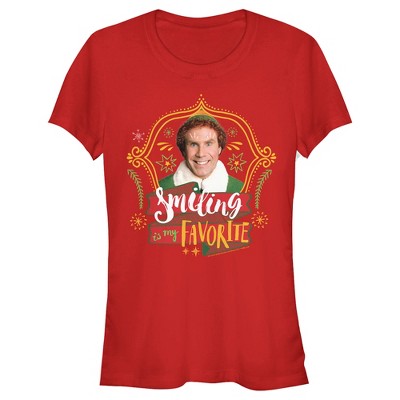 Juniors Womens Elf Buddy Smiling is My Favorite T-Shirt
