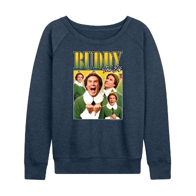 Women's - ELF - Buddy OMG Santa Lightweight French Terry Wide Neck Long Sleeve Graphic Shirt