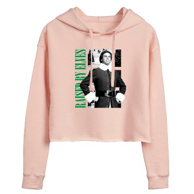 Women's - ELF - Christmas Raised By Elves Cropped Graphic Hoodie