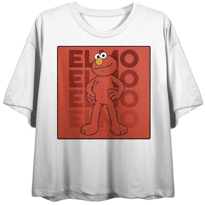 Sesame Street Elmo Repeat Text Women's White Crop T-Shirt