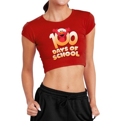 Women's Sesame Street Elmo 100 Days Cap Sleeve Baby Rib Crop Top