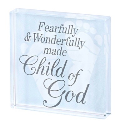 Dicksons Fearfully Wonderfully Made - Child Of God, Blue/Grey 3 x 3 Inch Glass Tabletop Sign Plaque,