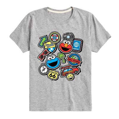 Boys' - Sesame Street - Cookie Monster Elmo Travel Patches Short Sleeve Graphic T-Shirt