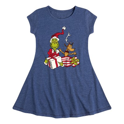 Girls' - The Grinch - Fit & Flair Cap Sleeve Graphic Dress