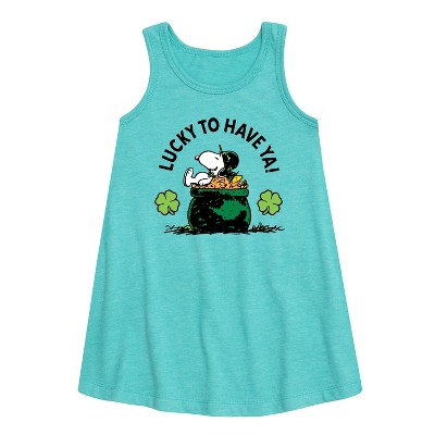 Girls' - Peanuts - Dancing Snoopy Shamrock Graphic Sleeveless Aline Dress