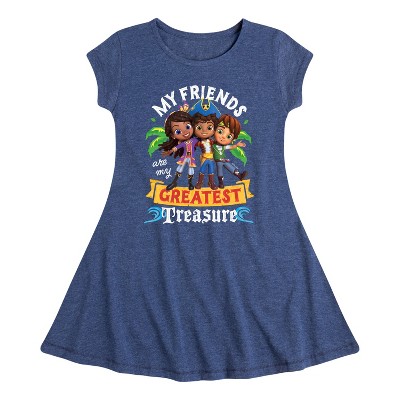 Girls' - Santiago of The Seas - My Friends Greatest Treasure Fit & Flair Cap Sleeve Graphic Dress