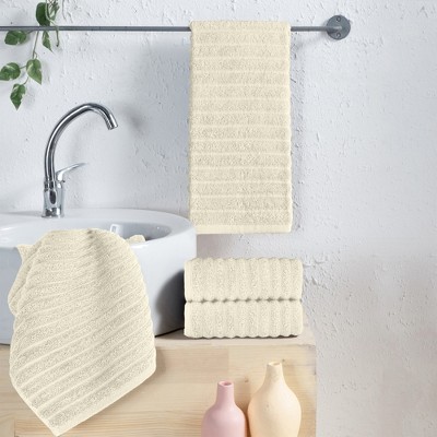 Elegant Comfort 4-Pack Premium Turkish Cotton Corduroy Stripe Hand Towel Set, 16 x 28 inch
