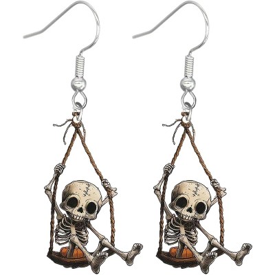 Marvel Spider-Man Earrings Upside-Down Spidey Huggie Clicker Hoop Dangle Jewelry Multicolored