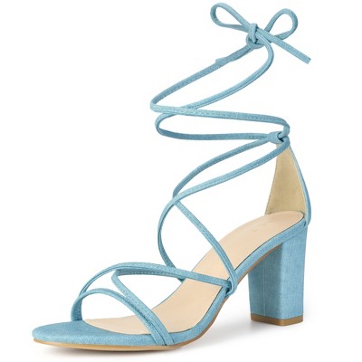 Allegra K Women's Woven Lace Up Strappy Stiletto Heel Sandals
