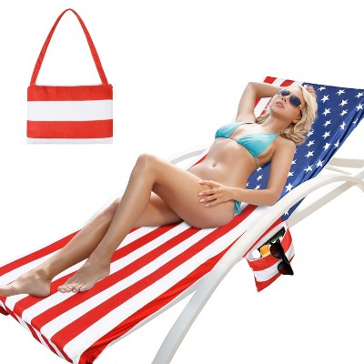 Catalonia Beach Lounge Chaise Covers with Anti-Slip Cap 3 Storage Pockets Convertible Tote Bag Design for Patio Pool Chaise, 78"x31"