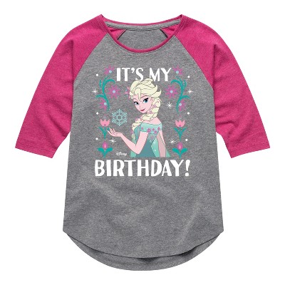 Girls' - Disney - Elsa It's My Birthday Shirt Tail Raglan Graphic T-shirt