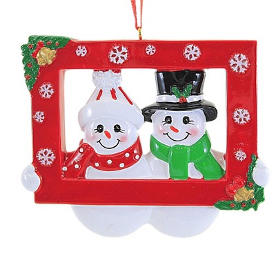 Holiday Ornament 3.25 In Snowman Couple In Red Frame Tree Ornament , Christmas Snowflakes (1PC)