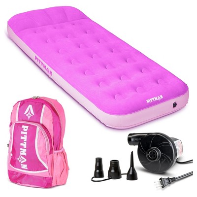 Pittman Outdoors Kids Air Mattress, 74" x 30" Air Bed w/ Pump & Backpack, Pink
