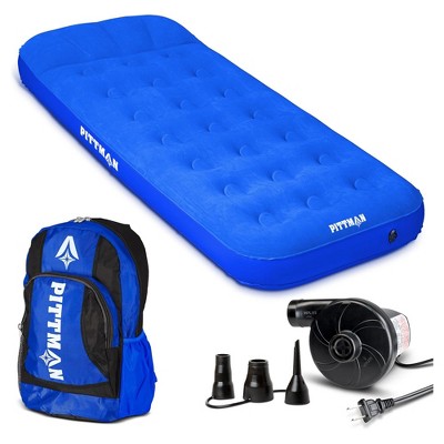 Pittman Outdoors Kids Air Mattress, 74" x 30" Air Bed w/ Pump & Backpack, Blue