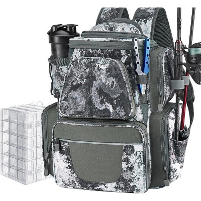 Fishing Backpack with 2 Rod Holders & 4 Tackle Boxes, Large Tackle Storage Bag With Rain Cover
