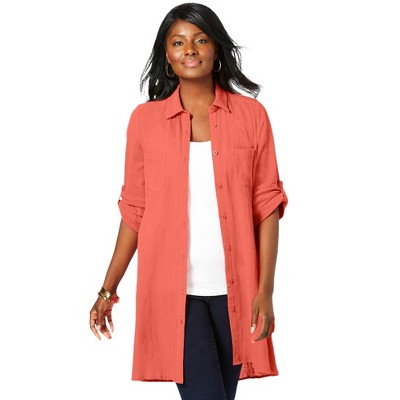 Jessica London Stretch Knit Henley Notch Babydoll Tunic
