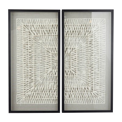 Olivia & May Set of 2 Paper Geometric Handmade 3D Origami Home Shadow Box with Black Frame White