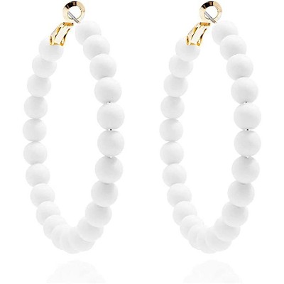Boho Beaded Hoop Earrings, Multicolor Acrylic Bead Dangle Earrings for Women