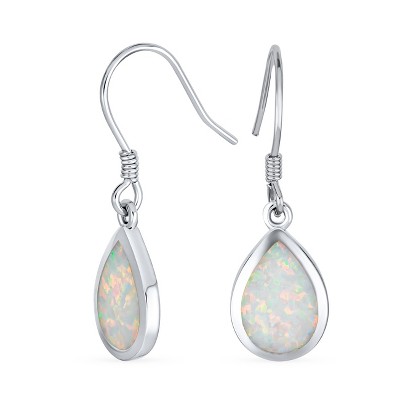Bling Jewelry Small Teardrop Iridescent White Created Opal Drop Dangle Earrings .925 Sterling Silver French Wire