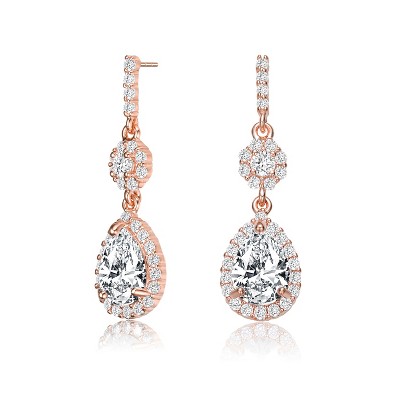 Guili Sterling Silver Rhodium Plated Pear and Round Cubic Zirconia Halo Drop Earrings, a Perfectly Crafted Symbol of Style and Grace