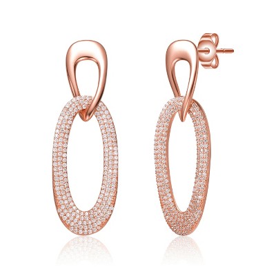 Guili Sterling Silver Two-Tone Elongated Oval Dangling Earrings, Designed for a Unique Sophisticated Look, Perfect for Adding Modern Charm