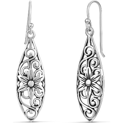 Boho Antique Carved Flower Dangle Earrings - Vintage Bronze Floral Hoop, Gold & Silver Plated Ethnic Jewelry Gift