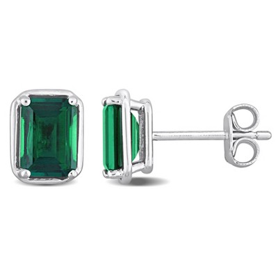 EVERLY JEWELRY |Sterling Silver 2 1/3 CT TGW Created Emerald Bezel Style Stud Earrings